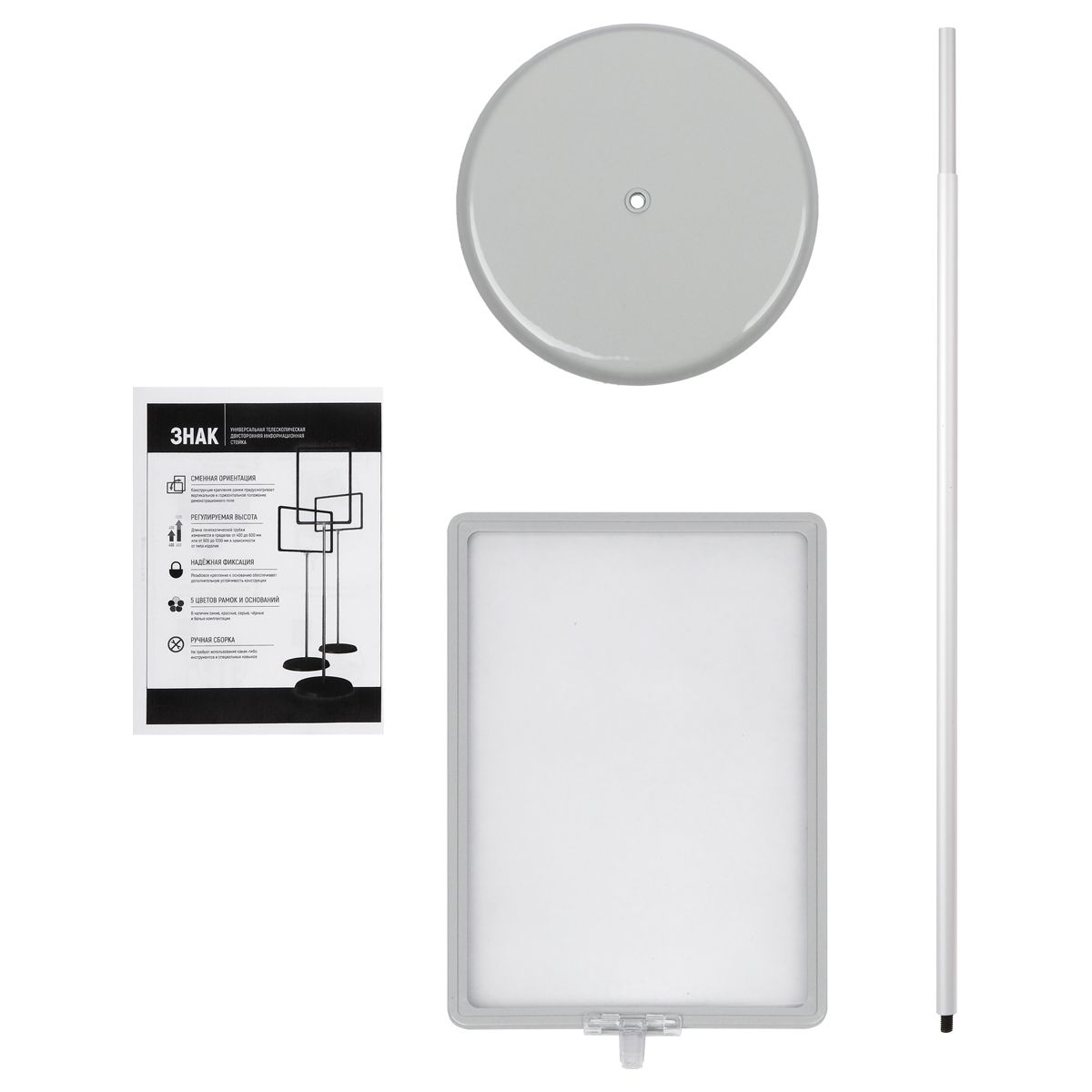 Стойка информационная OfficeSpace телескопическая А4, серая
