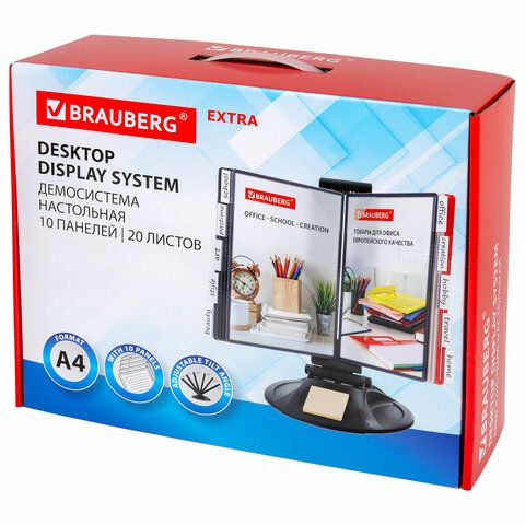 Демосистема настольная на 10 панелей, с 10 цветными панелями А4, черная, BRAUBERG "SOLID", 236714
