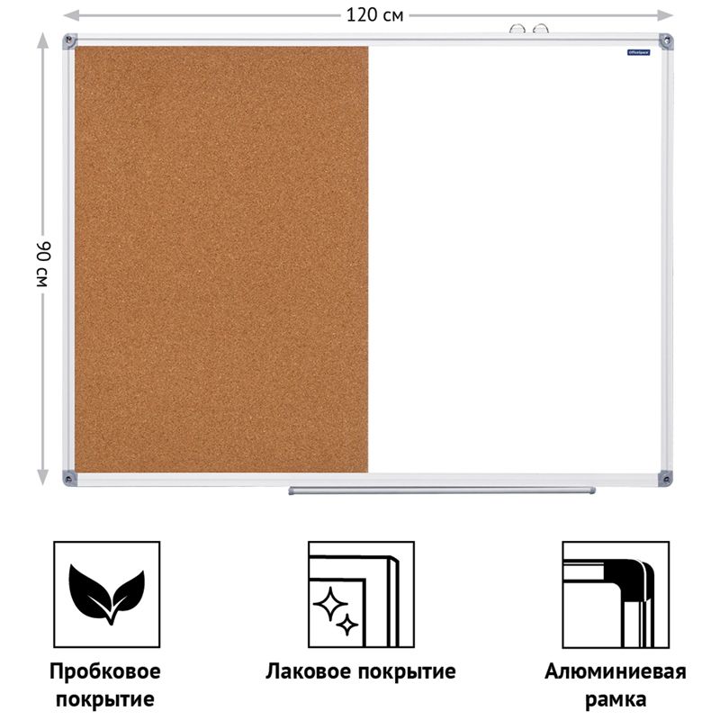 Доска магнитно-маркерная/пробковая OfficeSpace, 90*120см, алюминиевая рамка