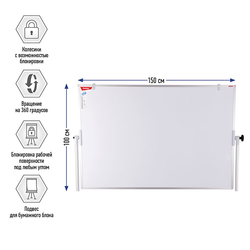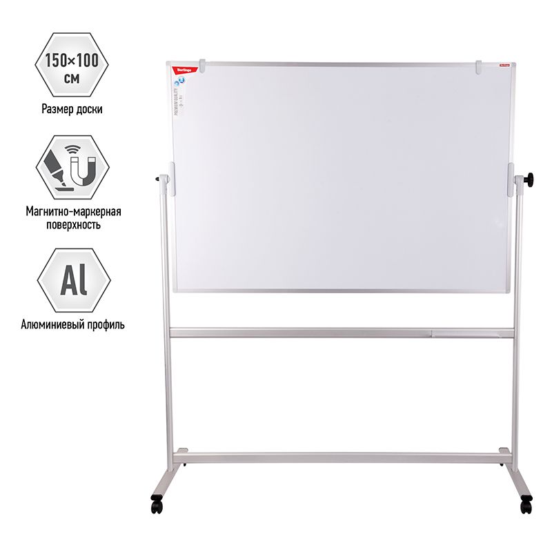 Доска магнитно-маркерная Berlingo "Premium", 100*150см, двусторонняя, поворотная, мобильная