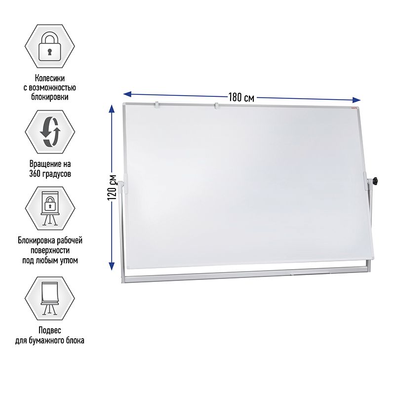 Доска магнитно-маркерная Berlingo "Premium", 120*180см, двусторонняя, поворотная, мобильная