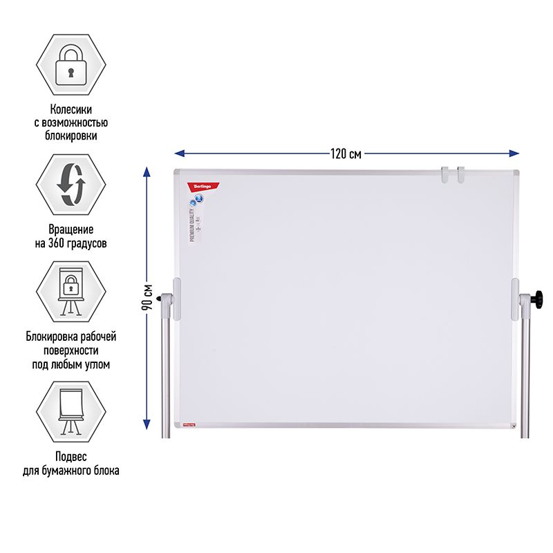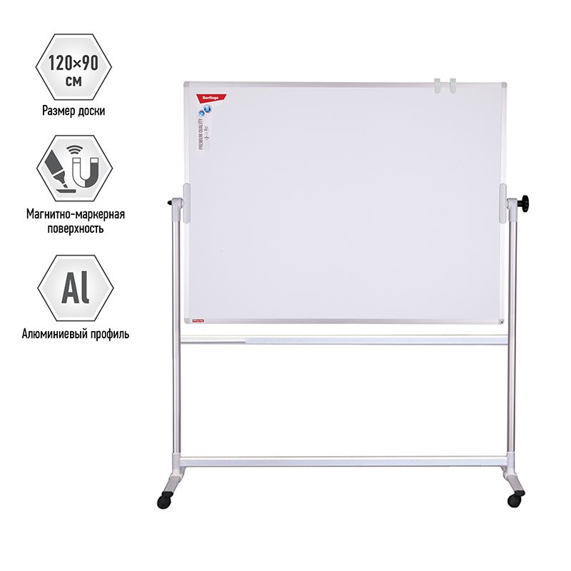 Доска магнитно-маркерная Berlingo "Premium", 90*120см, двусторонняя, поворотная, мобильная