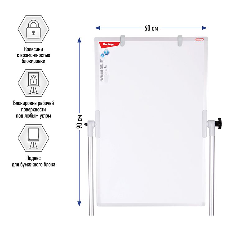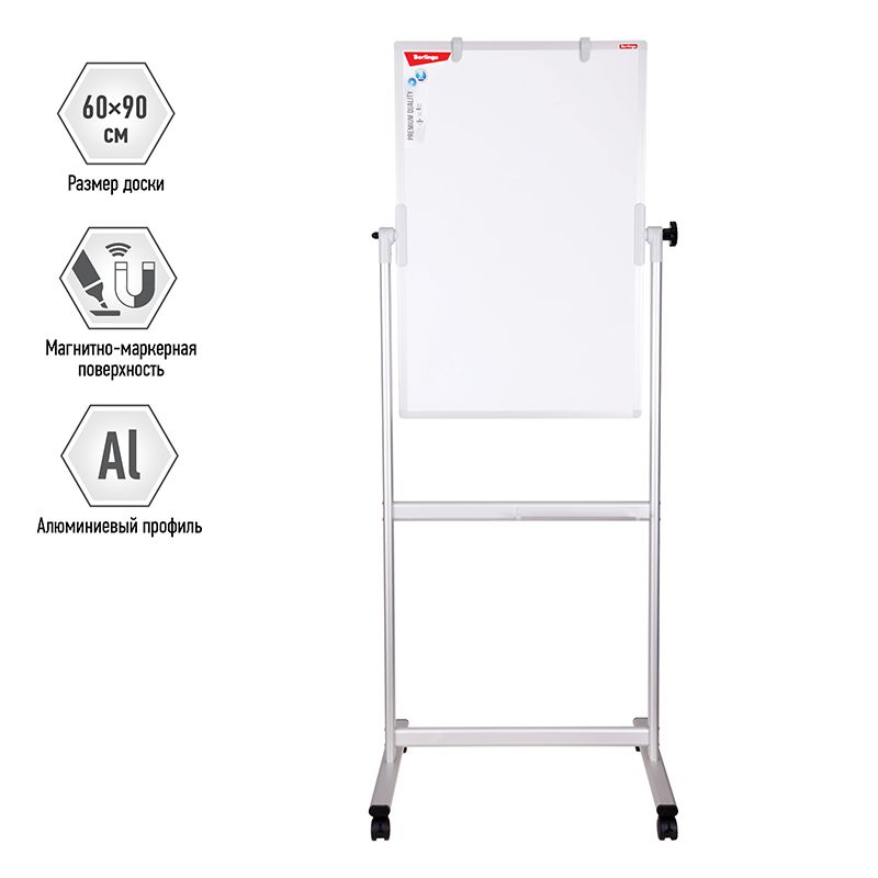 Доска магнитно-маркерная Berlingo "Premium", 90*60см, двусторонняя, поворотная, мобильная