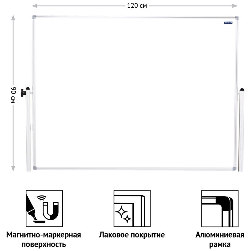 Доска магнитно-маркерная OfficeSpace, 90*120см, двустронняя, поворотная, мобильная, алюминиевый профиль