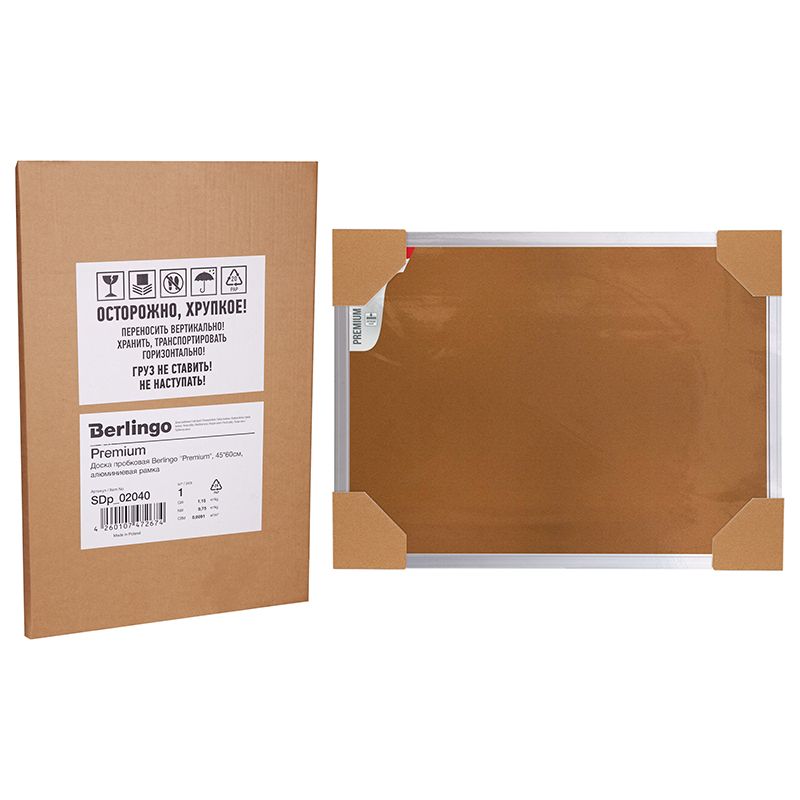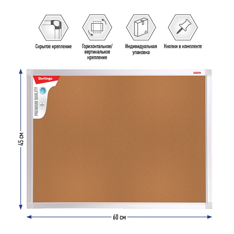 Доска пробковая Berlingo "Premium", 45*60см, алюминиевая рамка