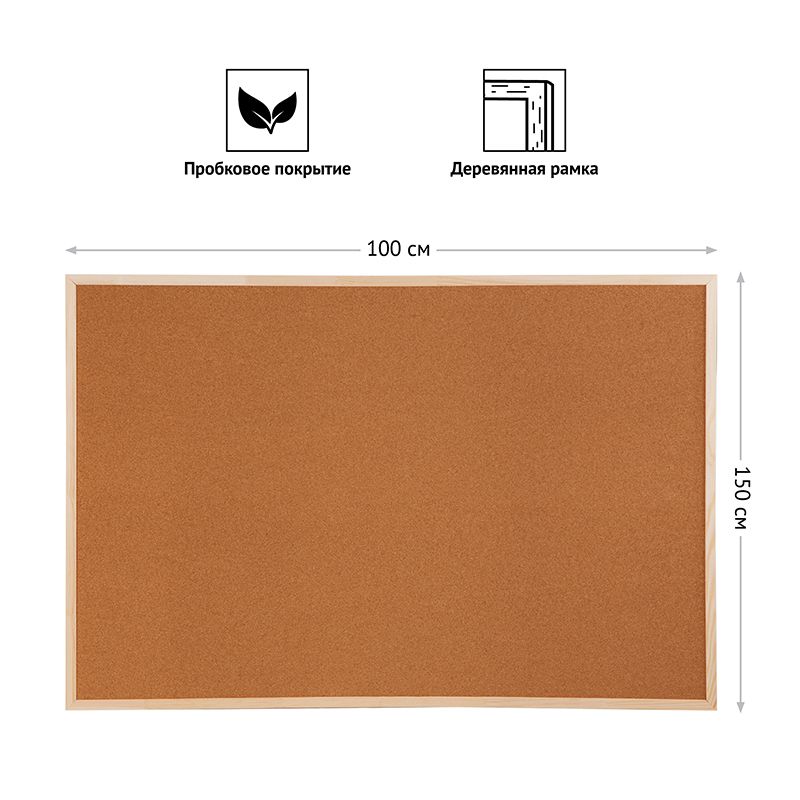 Доска пробковая OfficeSpace, 100*150см, деревянная рамка