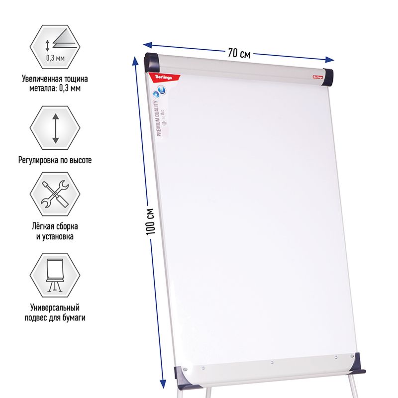 Флипчарт Berlingo "Premium", 70*100см, на треноге, регулировка по высоте, полочка