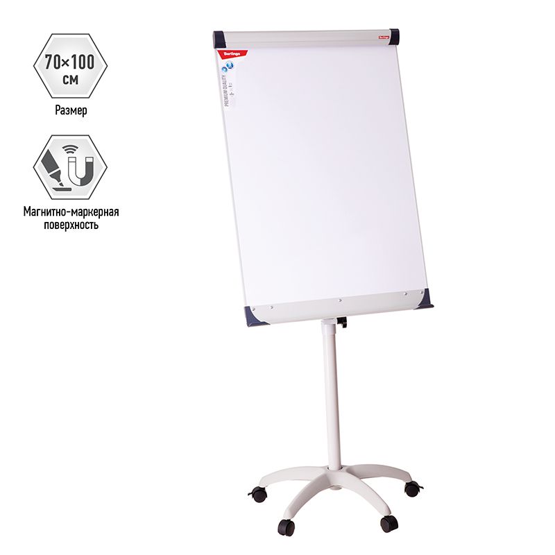 УЦЕНКА-Флипчарт передвижной Berlingo "Premium", 70*100см, регулировка по высоте, полочка