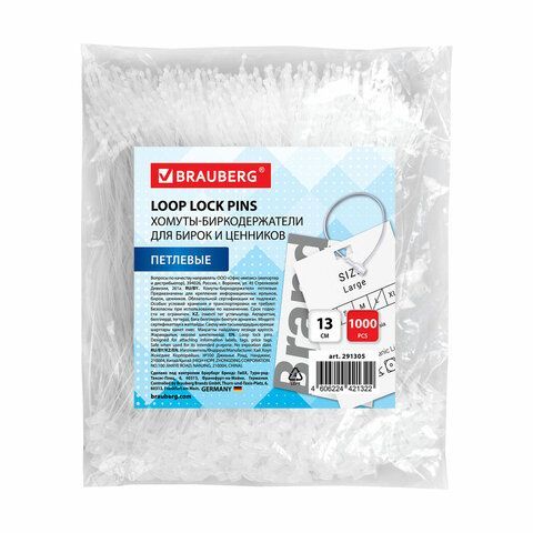 Хомут-биркодержатель бирка ценник петлевой 13 см, BRAUBERG, КОМПЛЕКТ 1000 шт., 291305