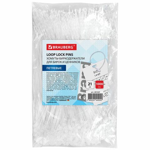 Хомут биркодержатель бирка ценник петлевой 21 см, BRAUBERG, КОМПЛЕКТ 1000 шт., 291347