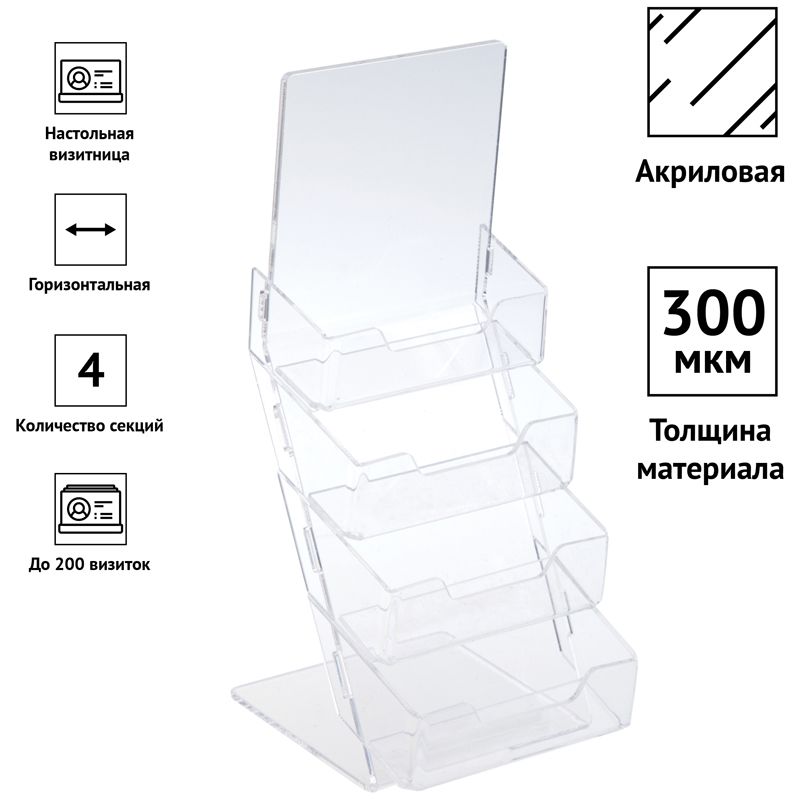 Подставка для визиток настольная OfficeSpace, 4 секции