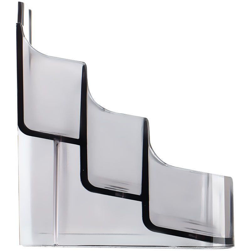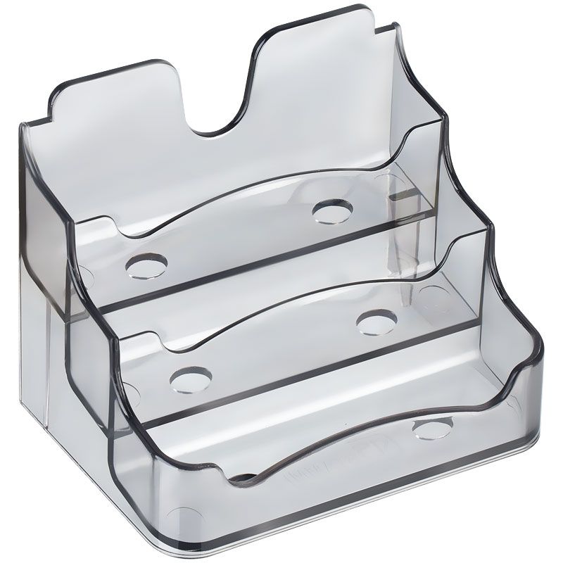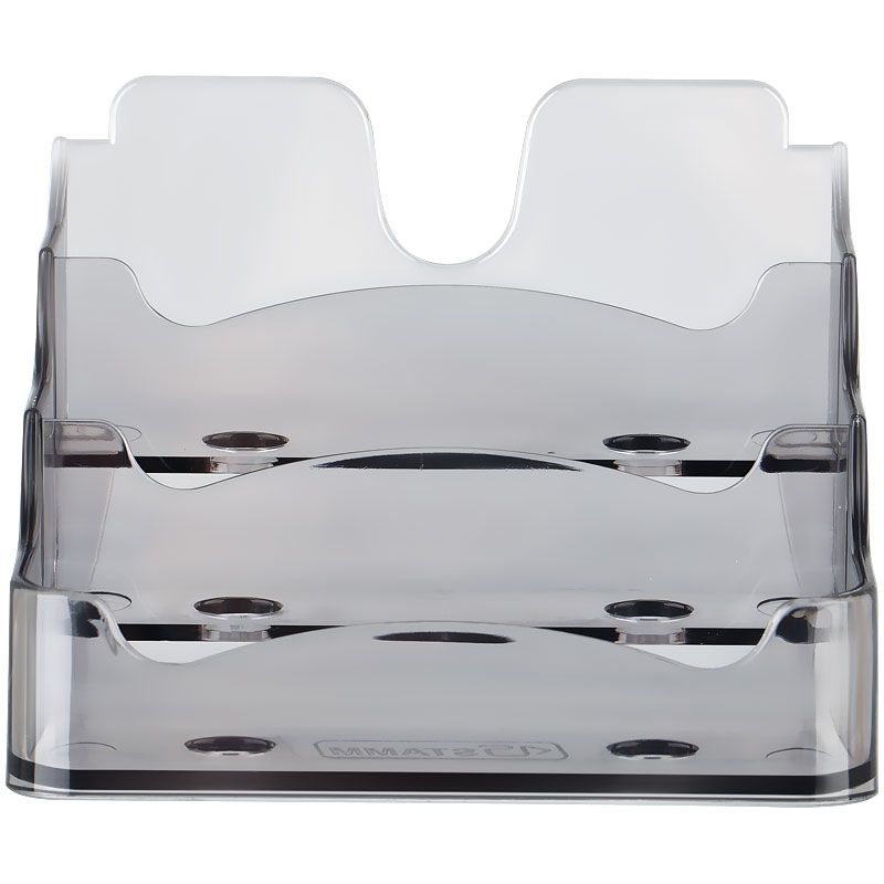 Подставка для визиток настольная СТАММ 70*102мм, 3 отделения, тонированная серая
