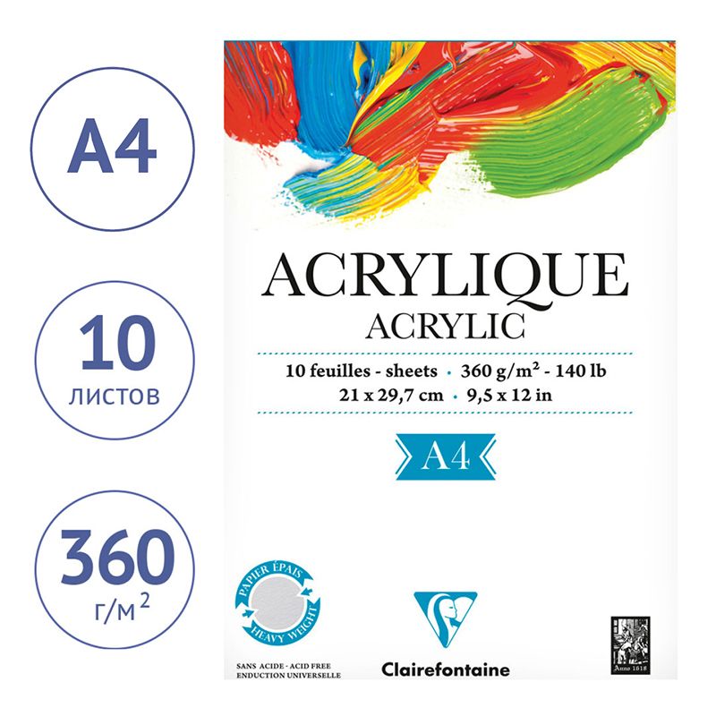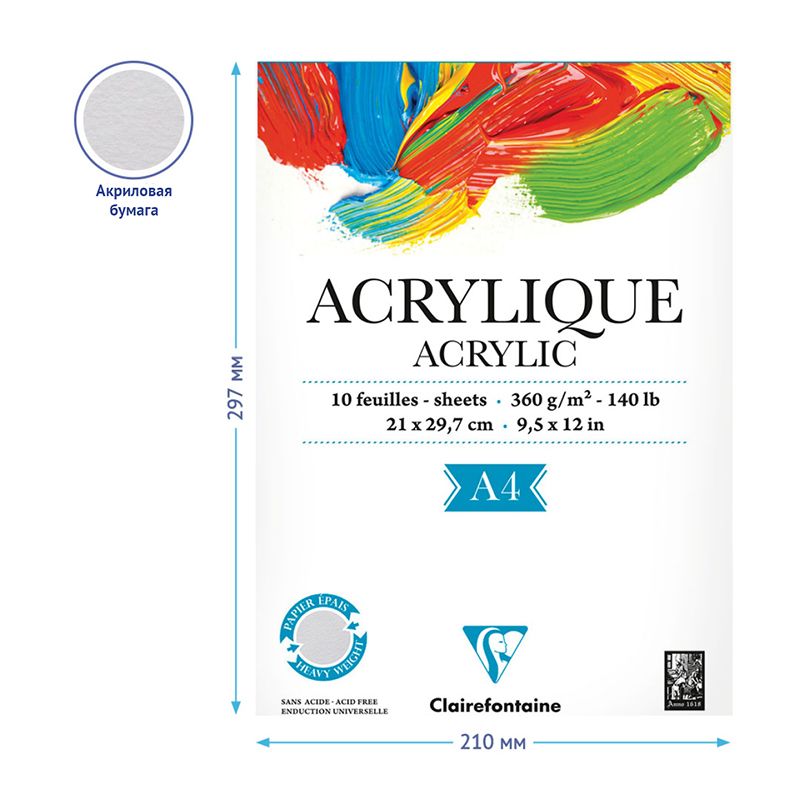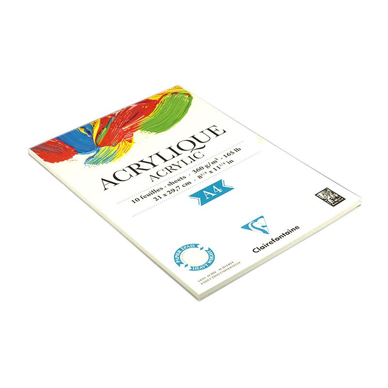 Альбом для акрила, 10л., А4, на склейке Clairefontaine "Acrylic", 360г/м2