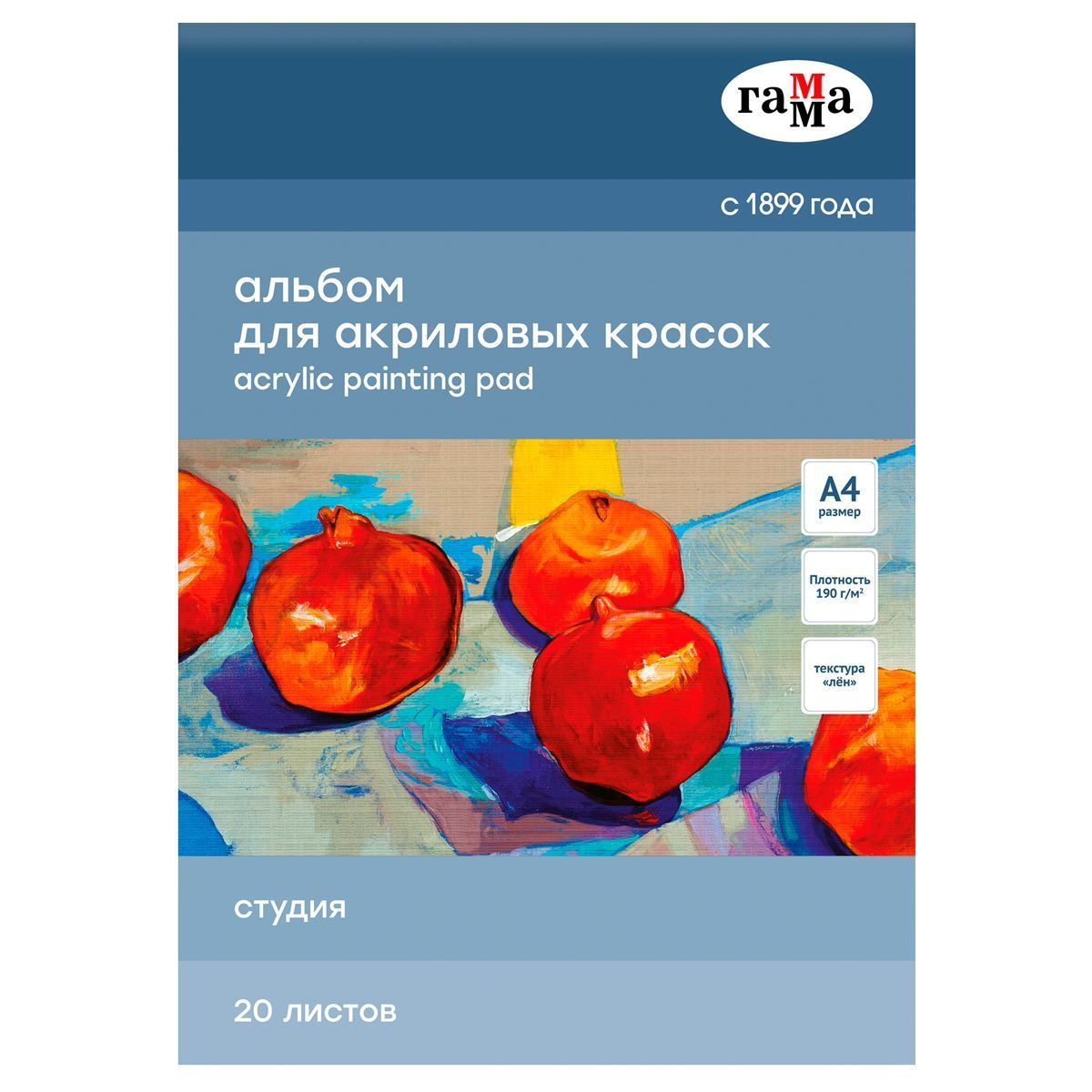 Альбом для акрила, 20л., А4, на склейке Гамма "Студия", 190г/м2, текстура "лен"