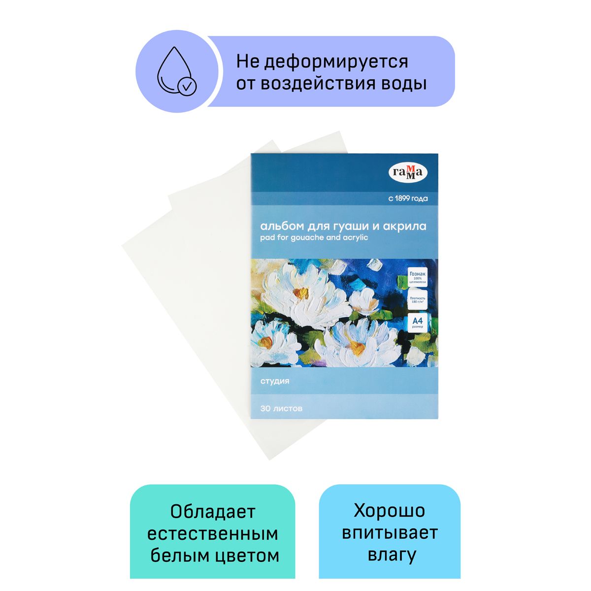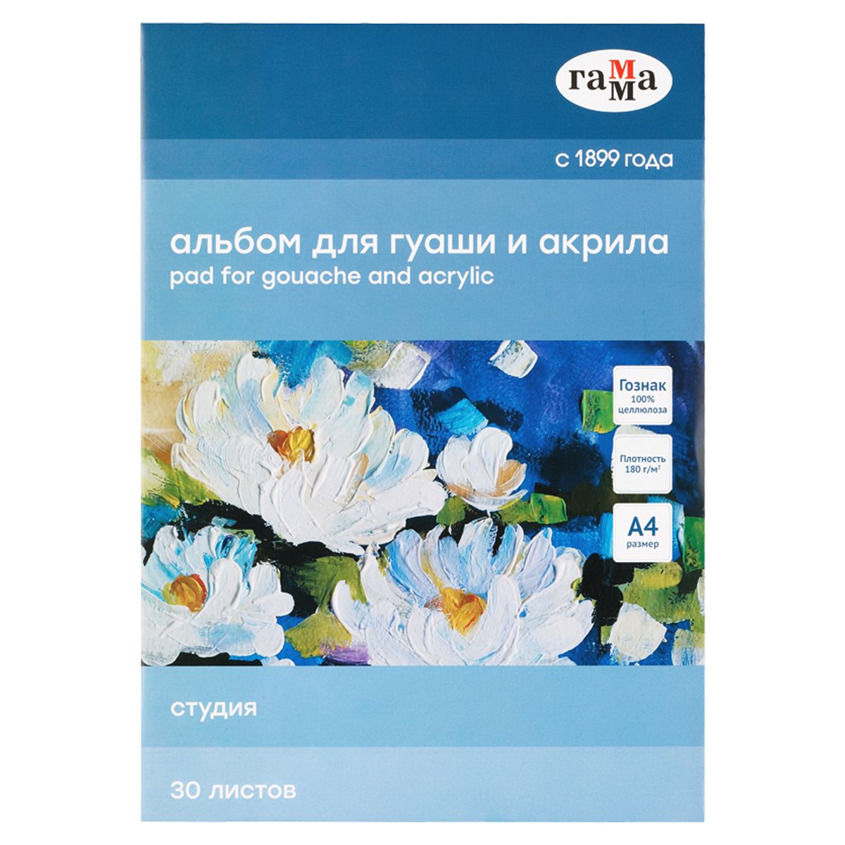 Альбом для гуаши и акрила, 30л., А4, на склейке Гамма "Студия", 180г/м3