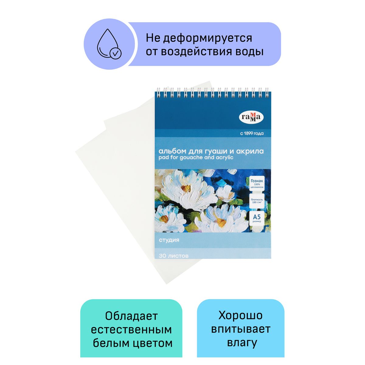 Альбом для гуаши и акрила, 30л., А5, на спирали Гамма "Студия", 180г/м2