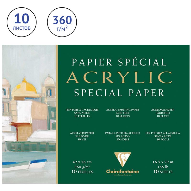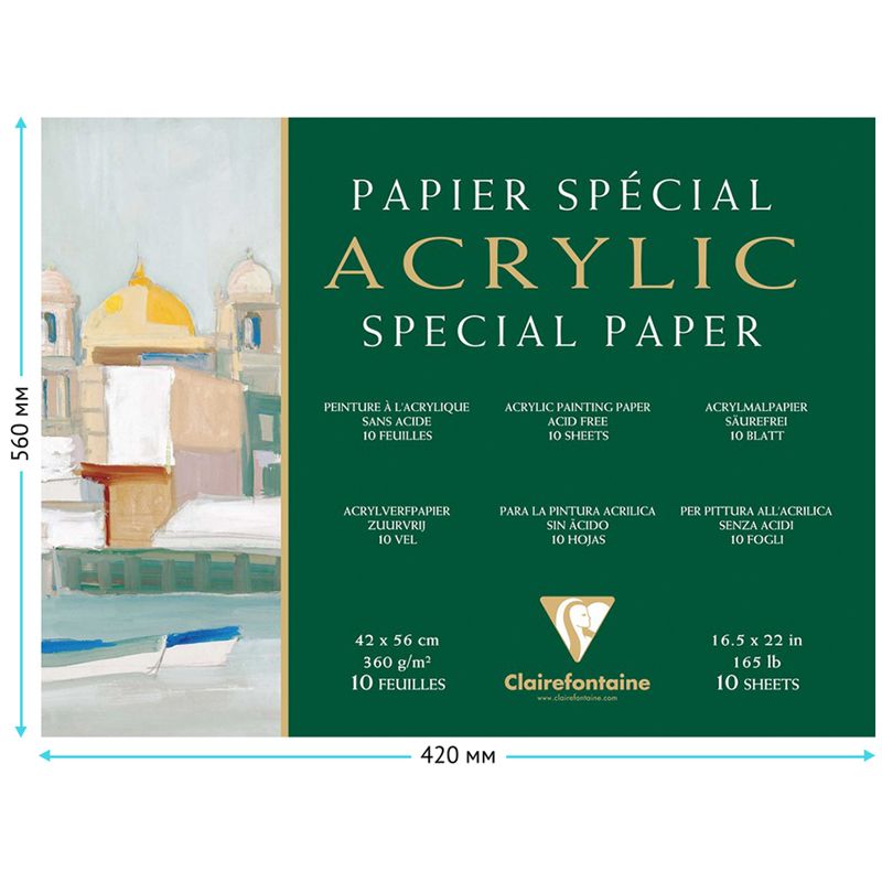 Бумага для акрила, 10л., 420*560мм Clairefontaine "Acrylic", 360г/м2, склейка по 4-м сторонам
