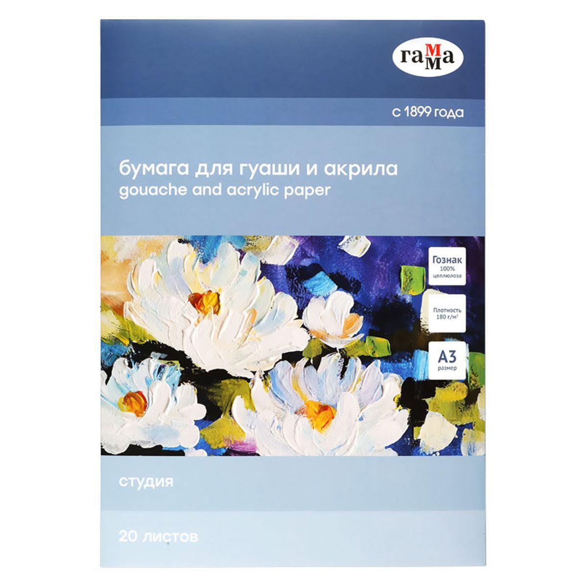 Папка для гуаши и акрила 20л., А3, Гамма "Студия", 180г/м2