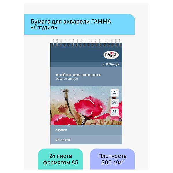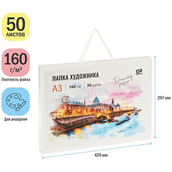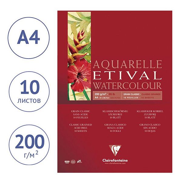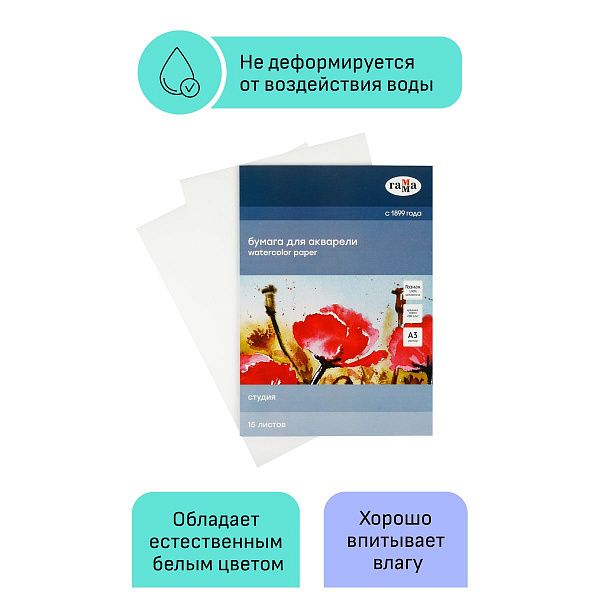 • Плотность — для акварели рекомендуется не менее 200–300 г/м², чтобы бумага не коробилась при использовании воды.