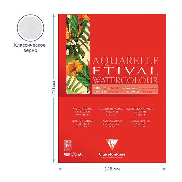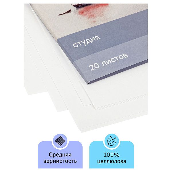 • Текстура поверхности — гладкая («веллум»), средне текстурированная («нот») и шероховатая («роуг») — влияет на стиль нанесения и восприятие работы.