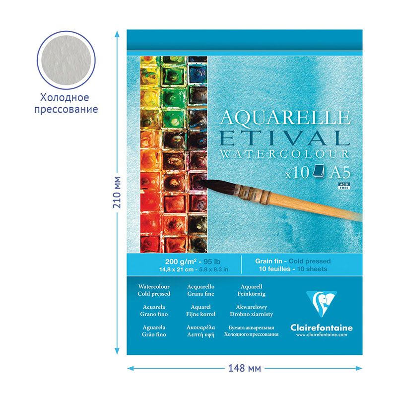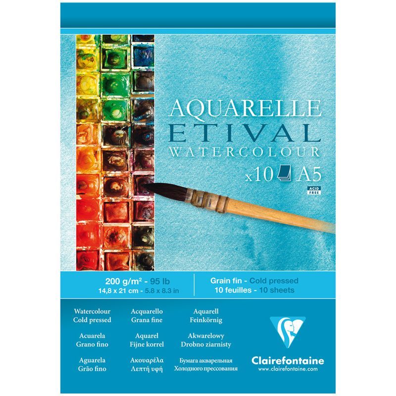 Альбом для акварели, 10л., А5, на склейке Clairefontaine "Etival", 200г/м2, холодное прессование