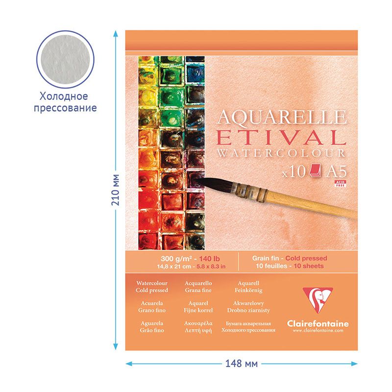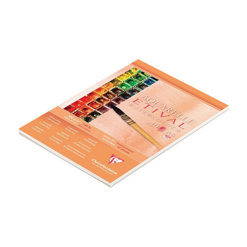 Альбом для акварели, 10л., А5, на склейке Clairefontaine "Etival", 300г/м2, холодное прессование