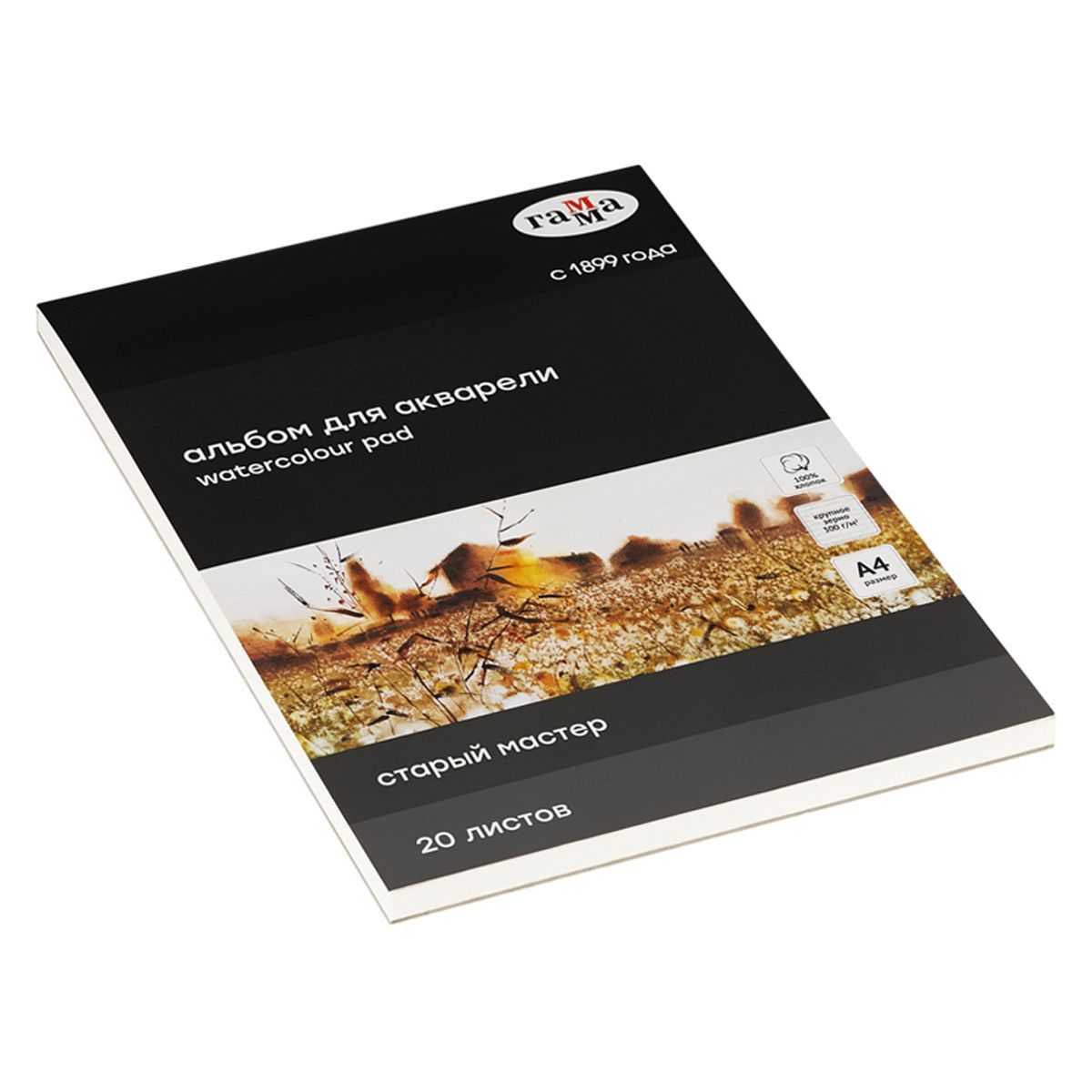Альбом для акварели, 20л., А4, склейка с 4-х сторон Гамма "Старый Мастер", 300г/м2, крупное зерно, 100% хлопок