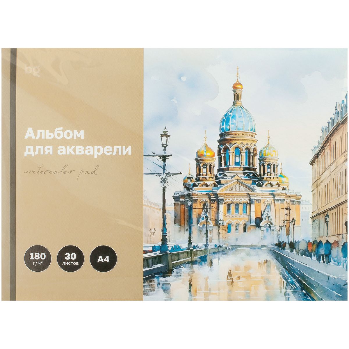 Альбом для акварели, 30л., А4, на склейке BG "Северная столица", 180г/м2