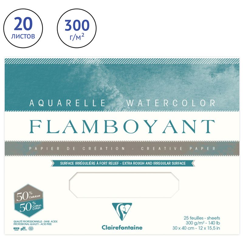 Бумага для акварели, 20л., 310*410мм, Clairefontaine "Flamboyant", 300г/м2, экстра-торшон, склейка