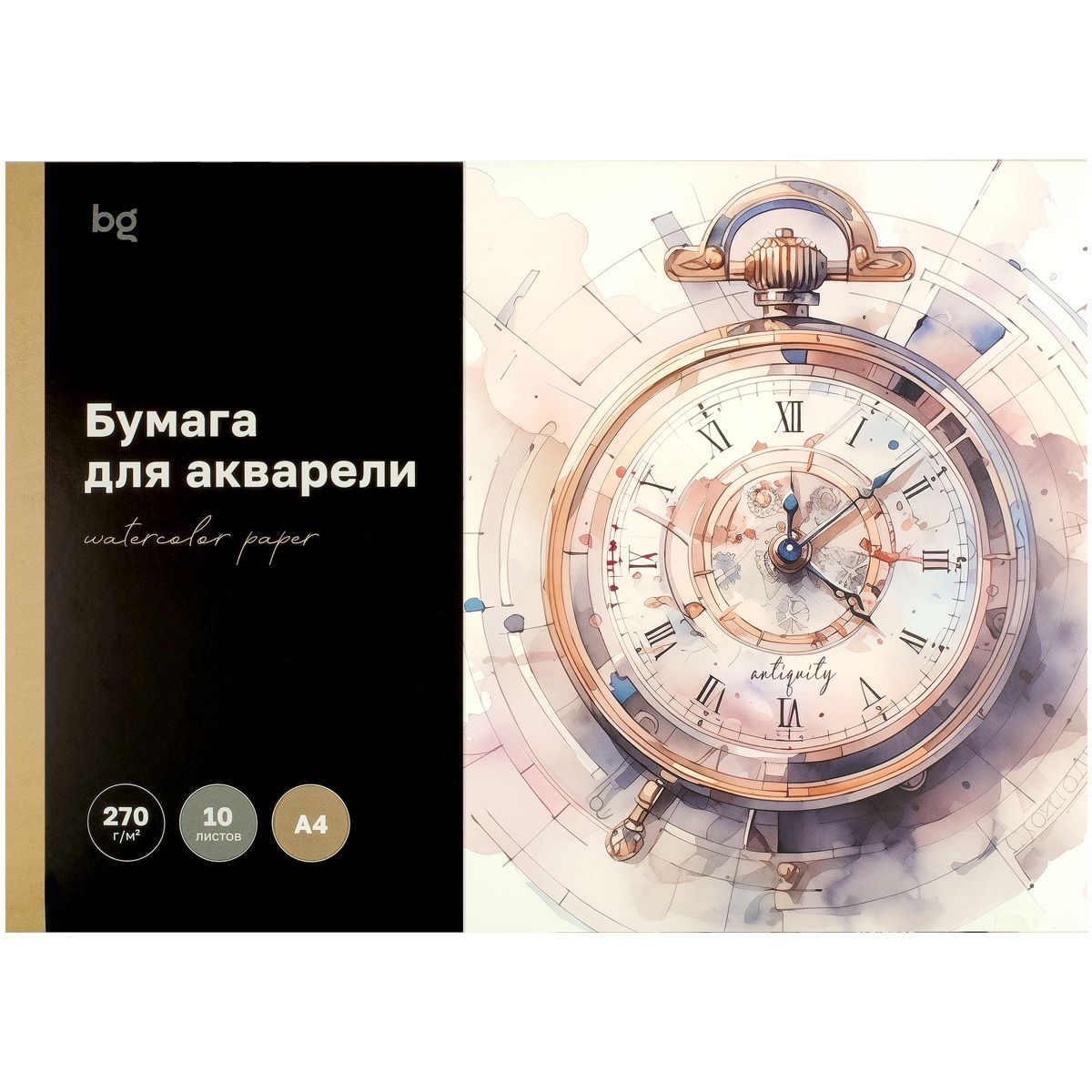 Папка для акварели 10л. А3, BG "Антикварные часы", 270г/м2