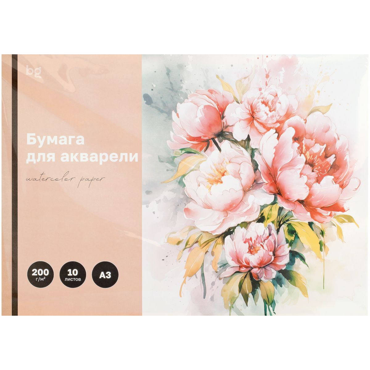 Папка для акварели, 10л., А3 BG "Пионы", 200г/м2