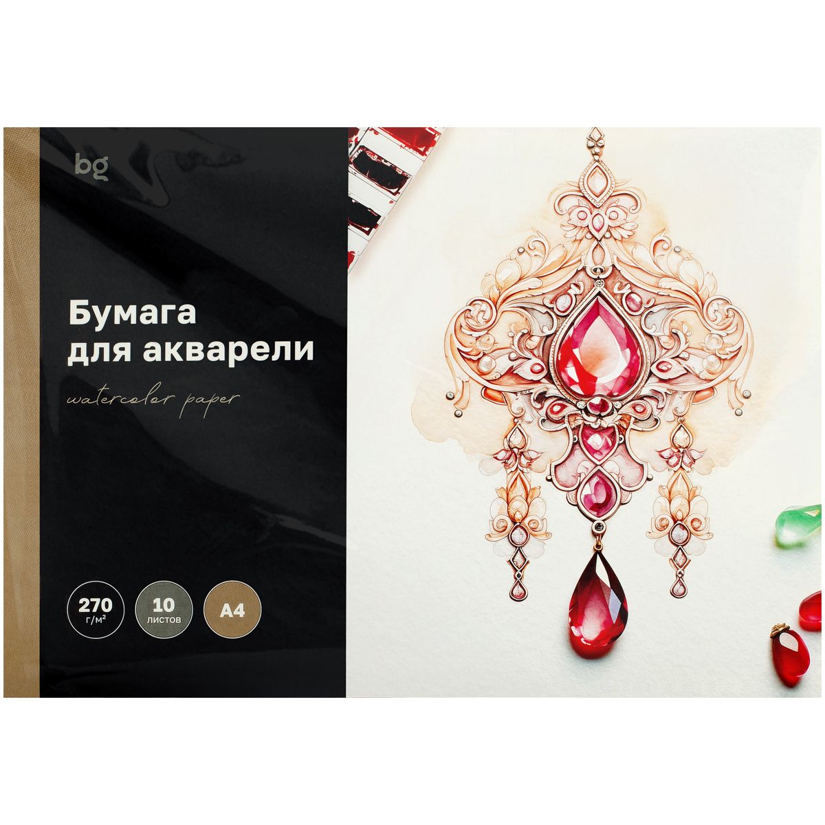 Папка для акварели 10л. А4, BG "Антикварная брошь", 270г/м2
