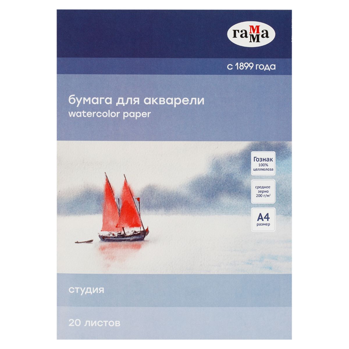 Папка для акварели, 20л., А4 Гамма "Студия", 200г/м2, среднее зерно