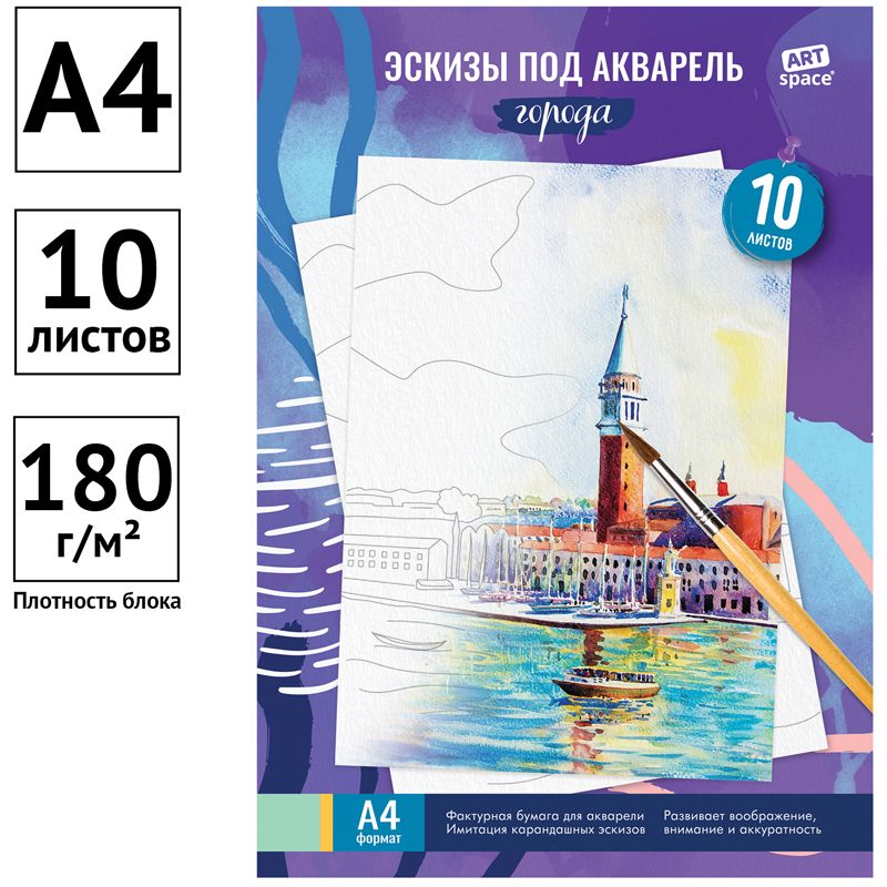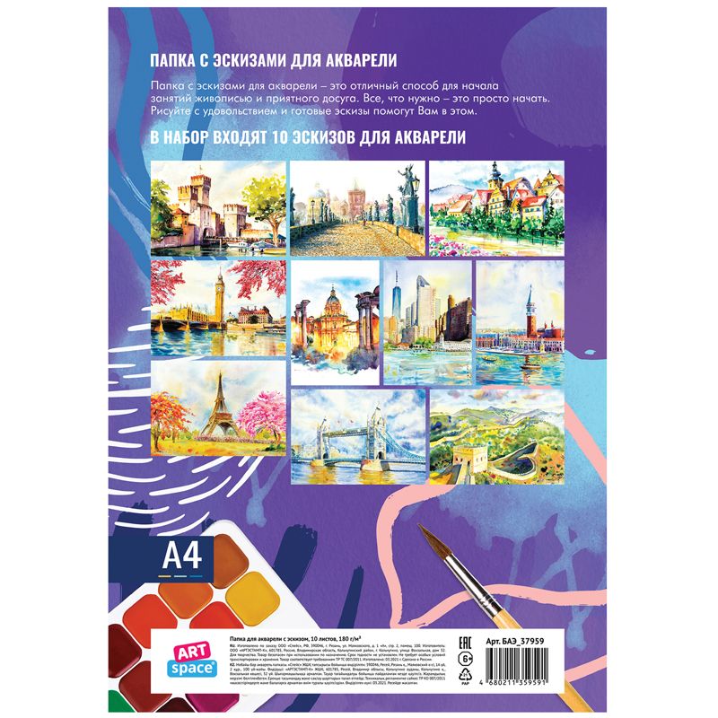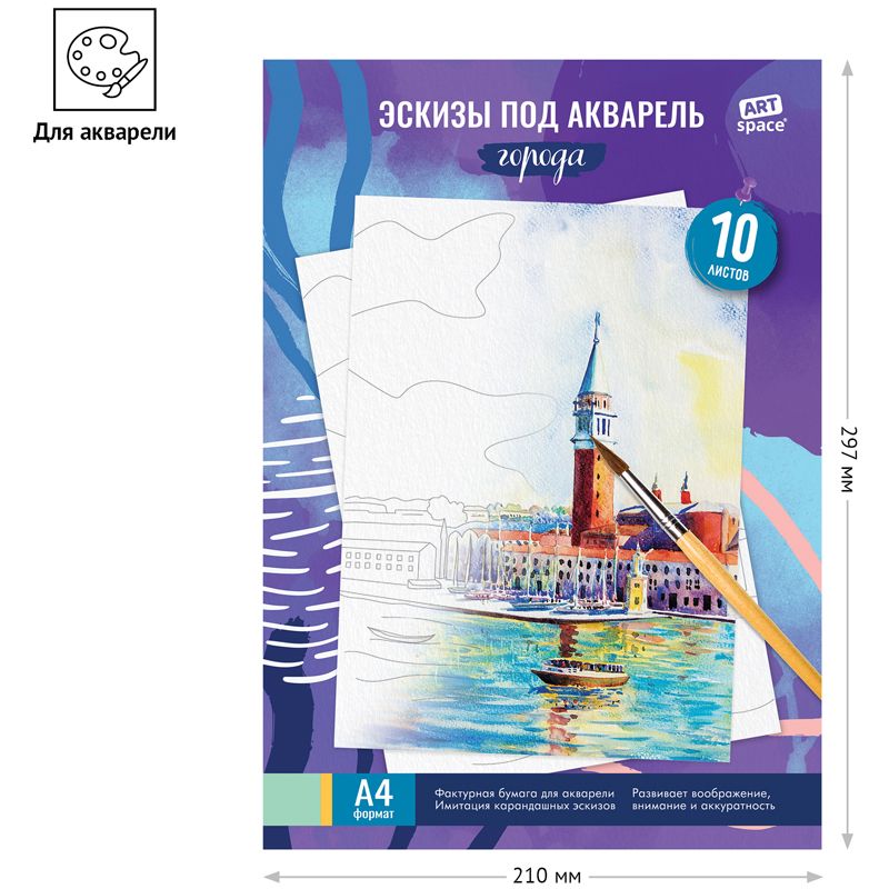 Папка для акварели, с эскизом, 10л., А4 ArtSpace "Города", 180г/м2