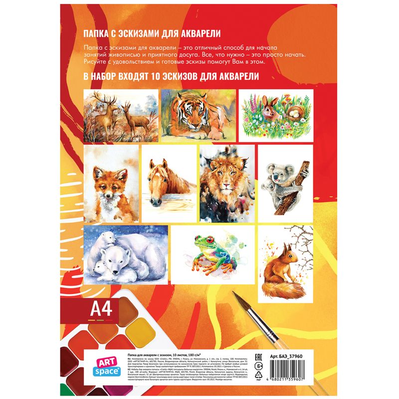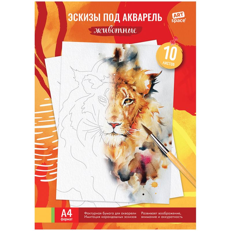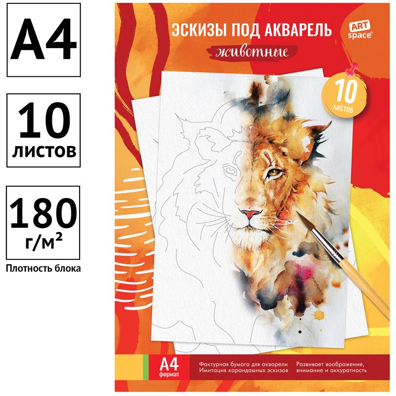 Папка для акварели, с эскизом, 10л., А4 ArtSpace "Животные", 180г/м2