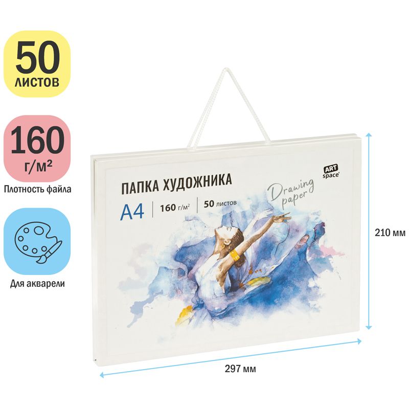 Папка художника для акварели, 50л., А4 ArtSpace, 160г/м2