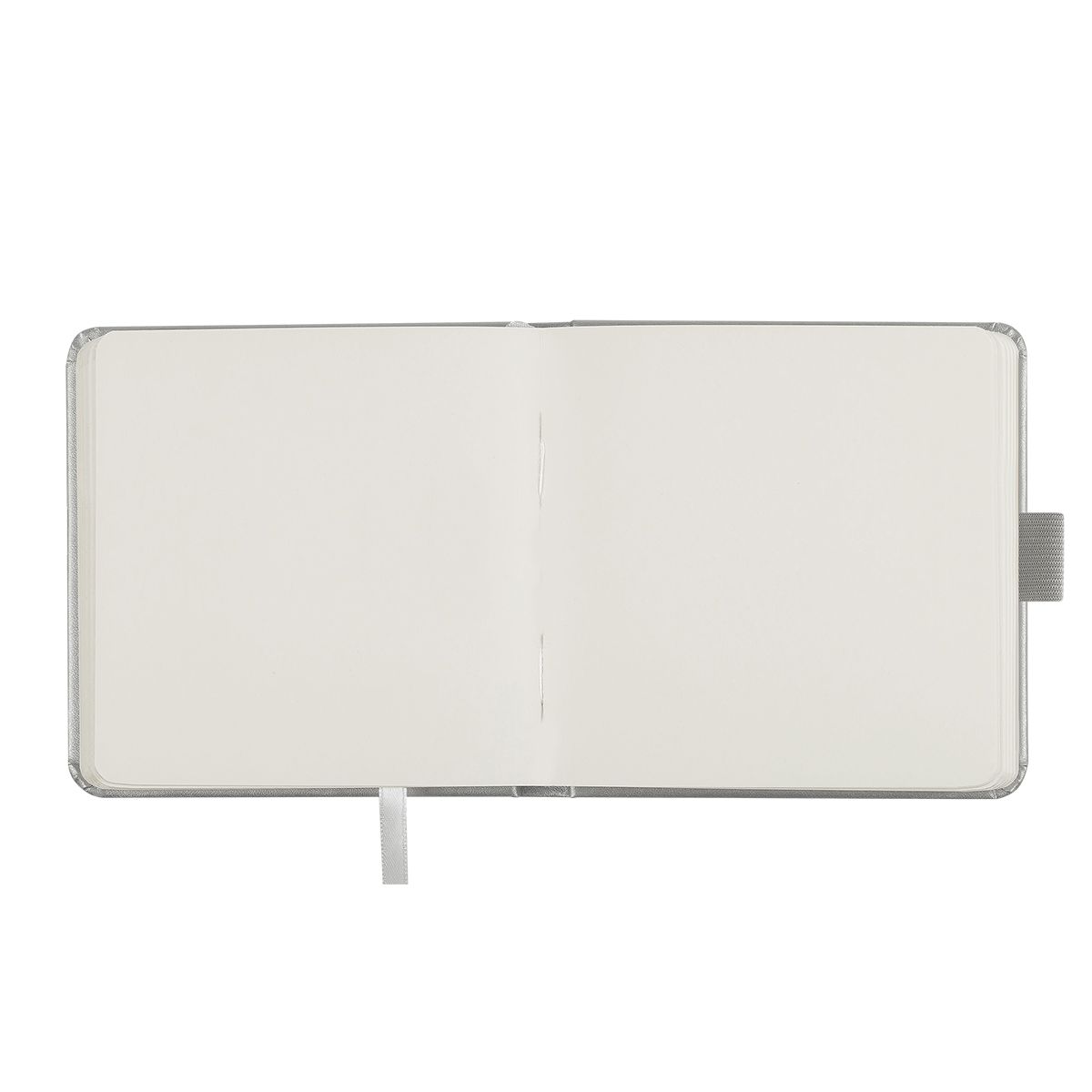 Лаконичный, компактный размер и жёсткая обложка с эффектом soft-touch обеспечивает удобство зарисовок на прогулке или в путешествии. Цвет обложки – серебро. Закладка-ляссе помогает быстро открыть скетчбук на нужной странице, а эластичная резинка предотвращает листы от замятия и случайного открытия.