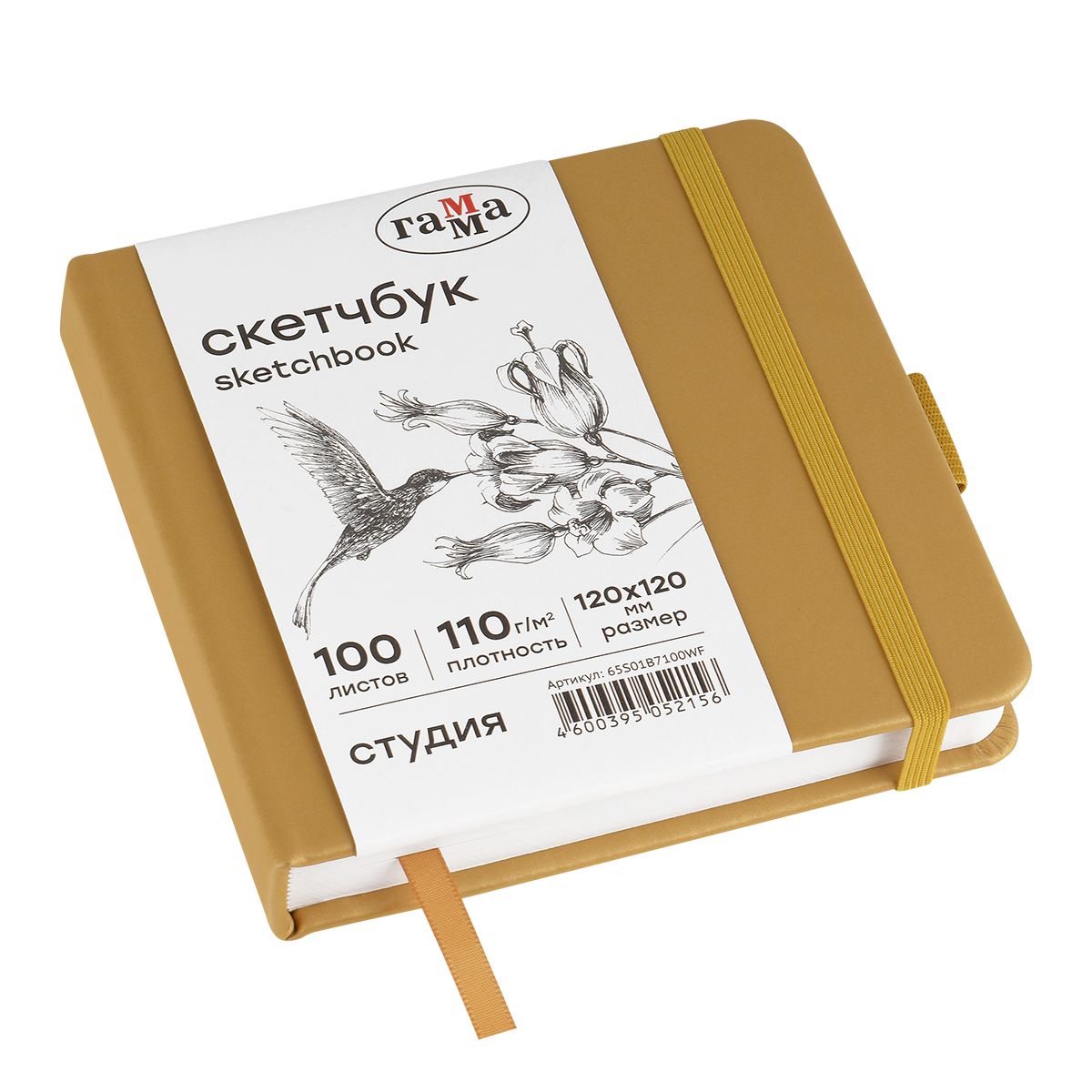 Скетчбук 100л., 120*120 Гамма "Студия", золото, твердая обложка, на резинке, белая, 110г/м2