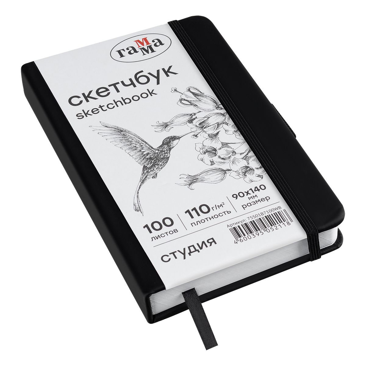 Скетчбук 100л., 90*140 Гамма "Студия", черный, твердая обложка, на резинке, белая, 110г/м2