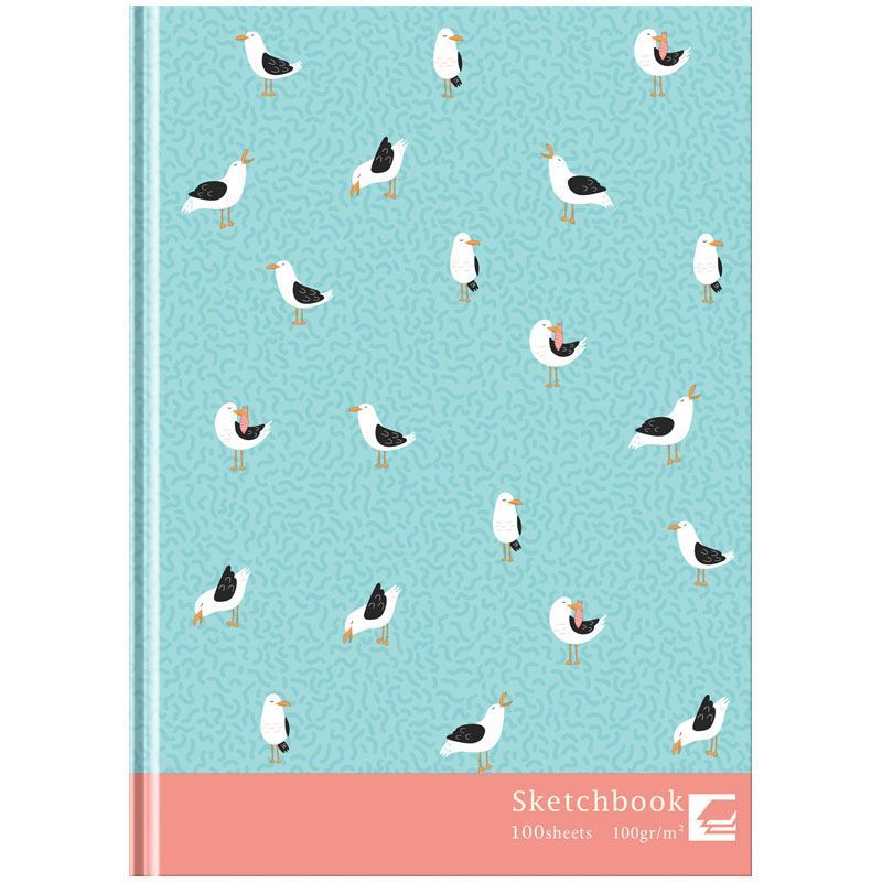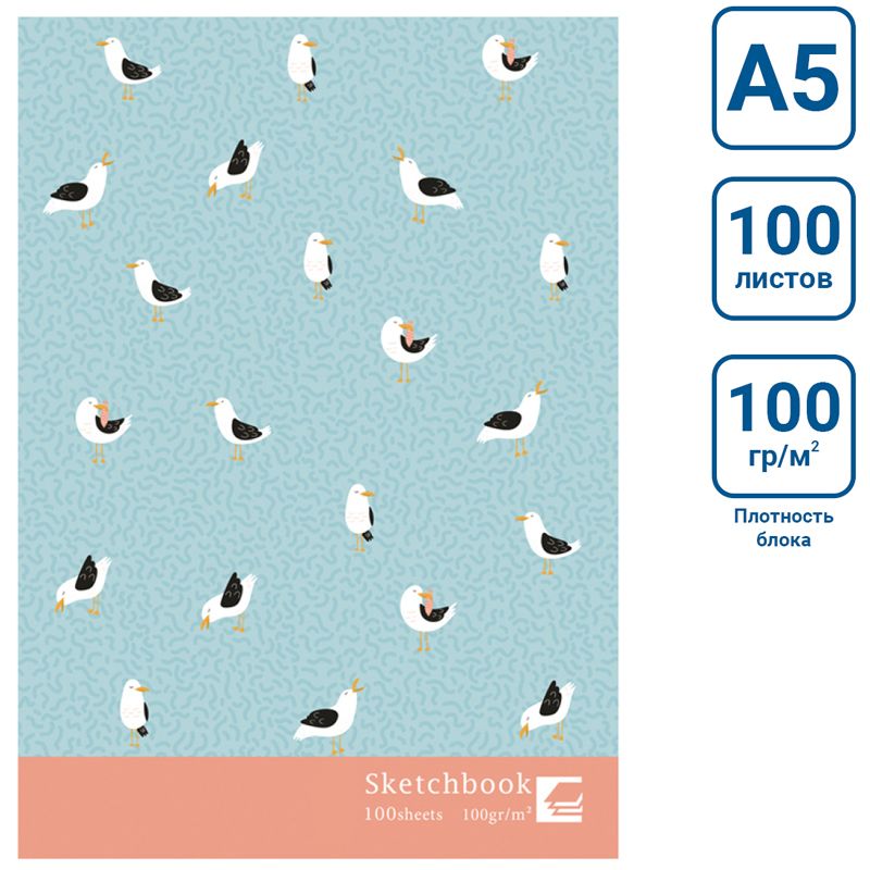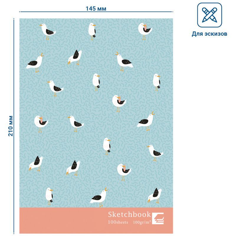 Скетчбук 100л., А5 7БЦ BG "Птицы", матовая ламинация, выб. лак, 100г/м2