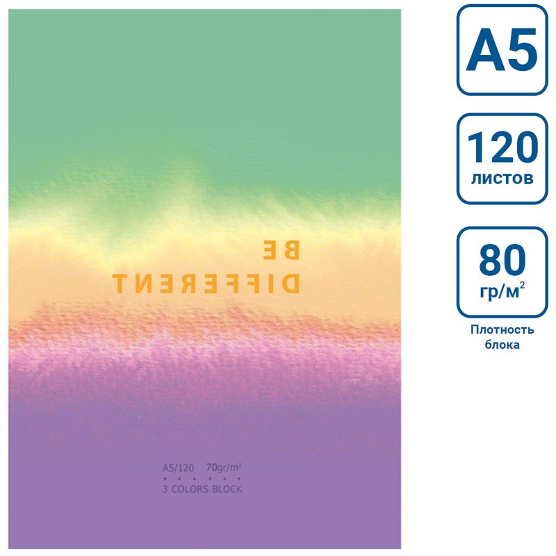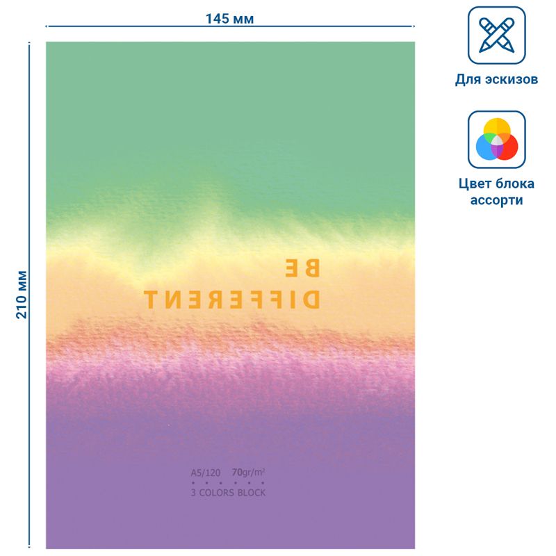 Скетчбук 120л., А5 7БЦ BG "Будь другим", матовая ламинация, трехцветный тонированный блок, 80г/м2