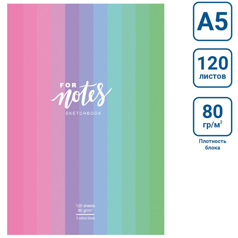 Скетчбук 120л., А5 7БЦ BG "For notes", матовая ламинация, трехцветный тонированный блок, 80г/м2