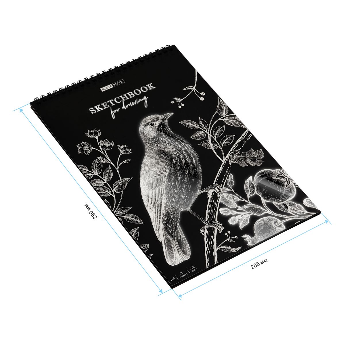 Скетчбук 20л., А4 ArtSpace "Black line. Bird", на гребне, черный блок, 120г/м2