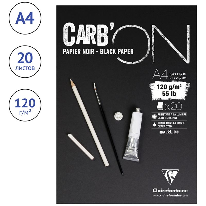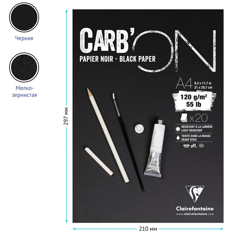 Скетчбук 20л., А4 Clairefontaine "Carb ON", на склейке, мелкозер., черный, 120г/м2