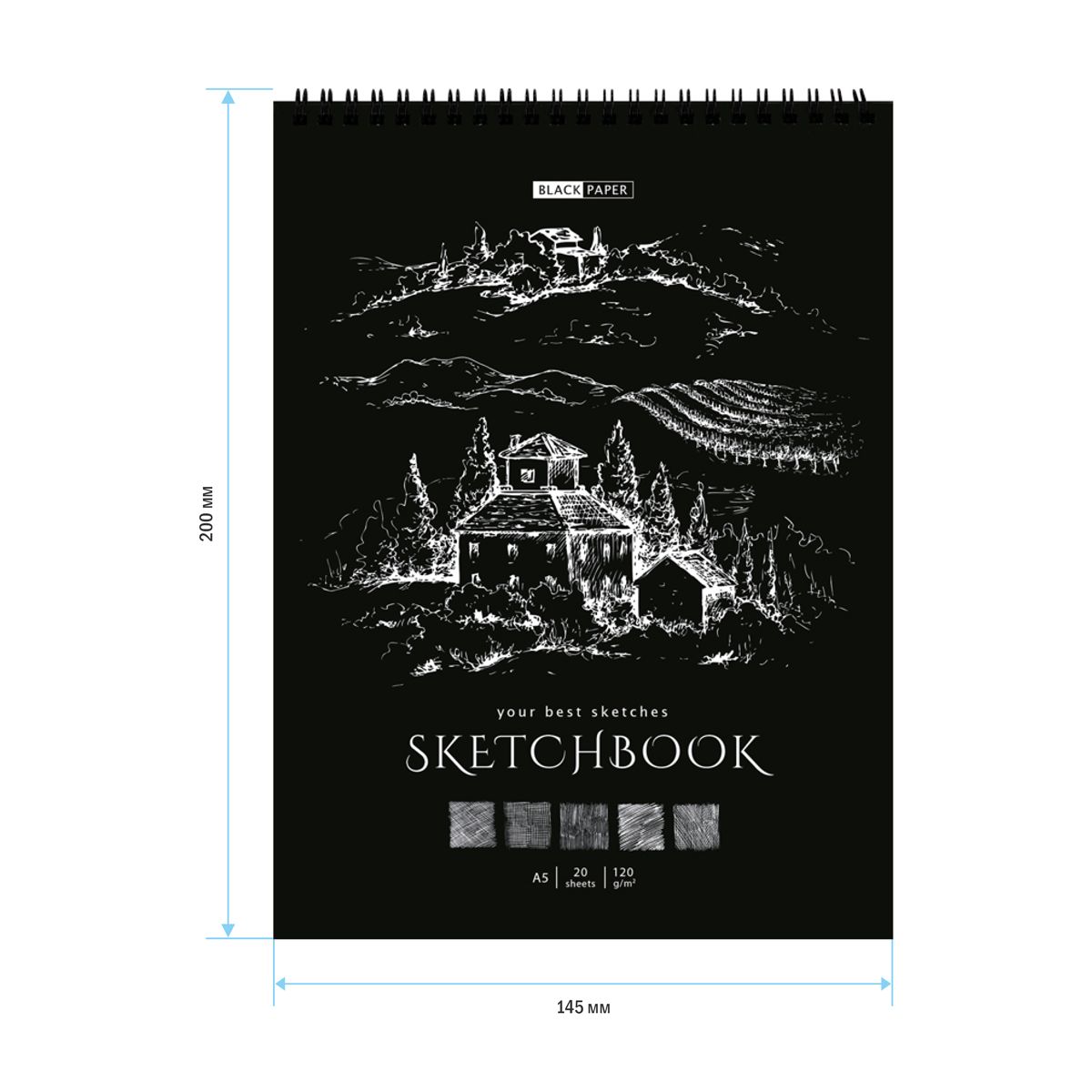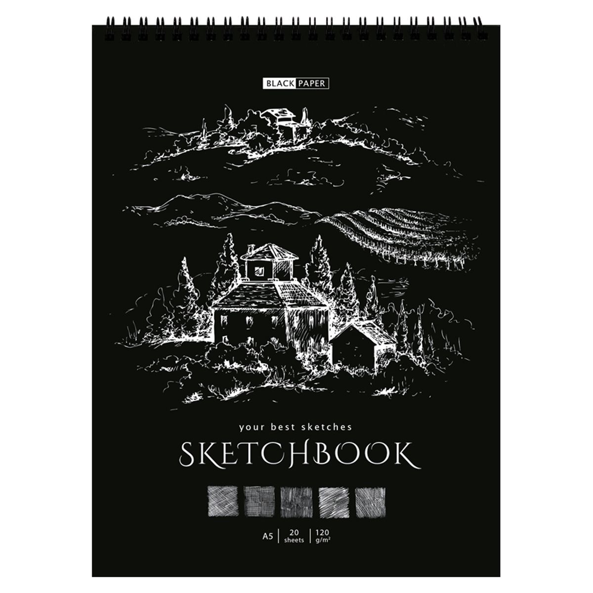 Скетчбук 20л., А5 ArtSpace "Black line. House", на гребне, черный блок,120г/м2