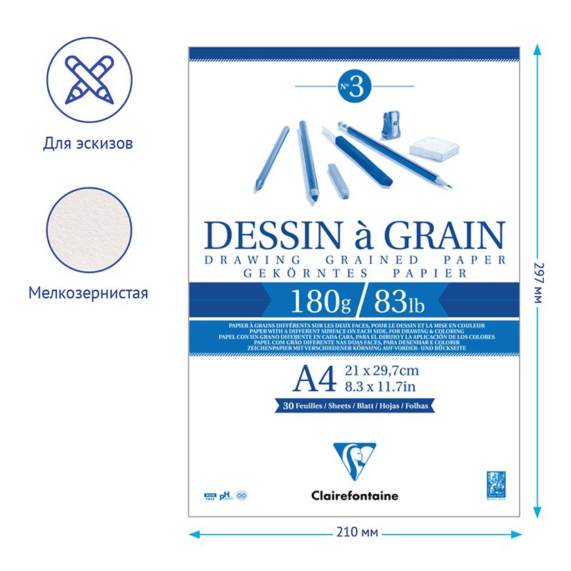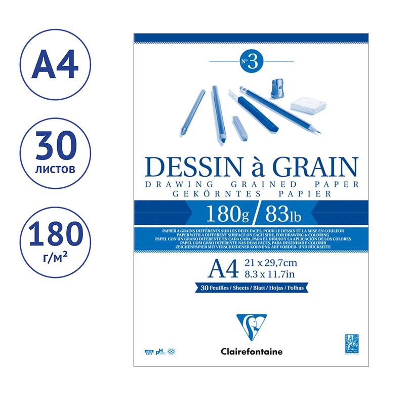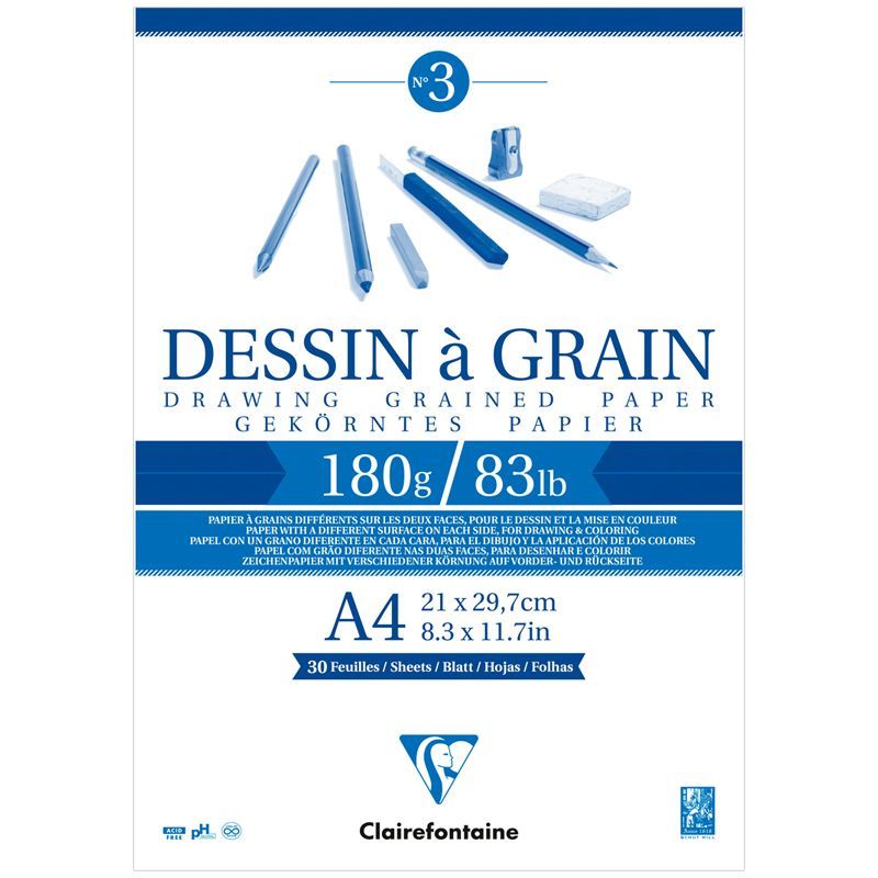 Скетчбук 30л., А4 Clairefontaine "Dessin a grain", на склейке, мелкозернистая, 180г/м2