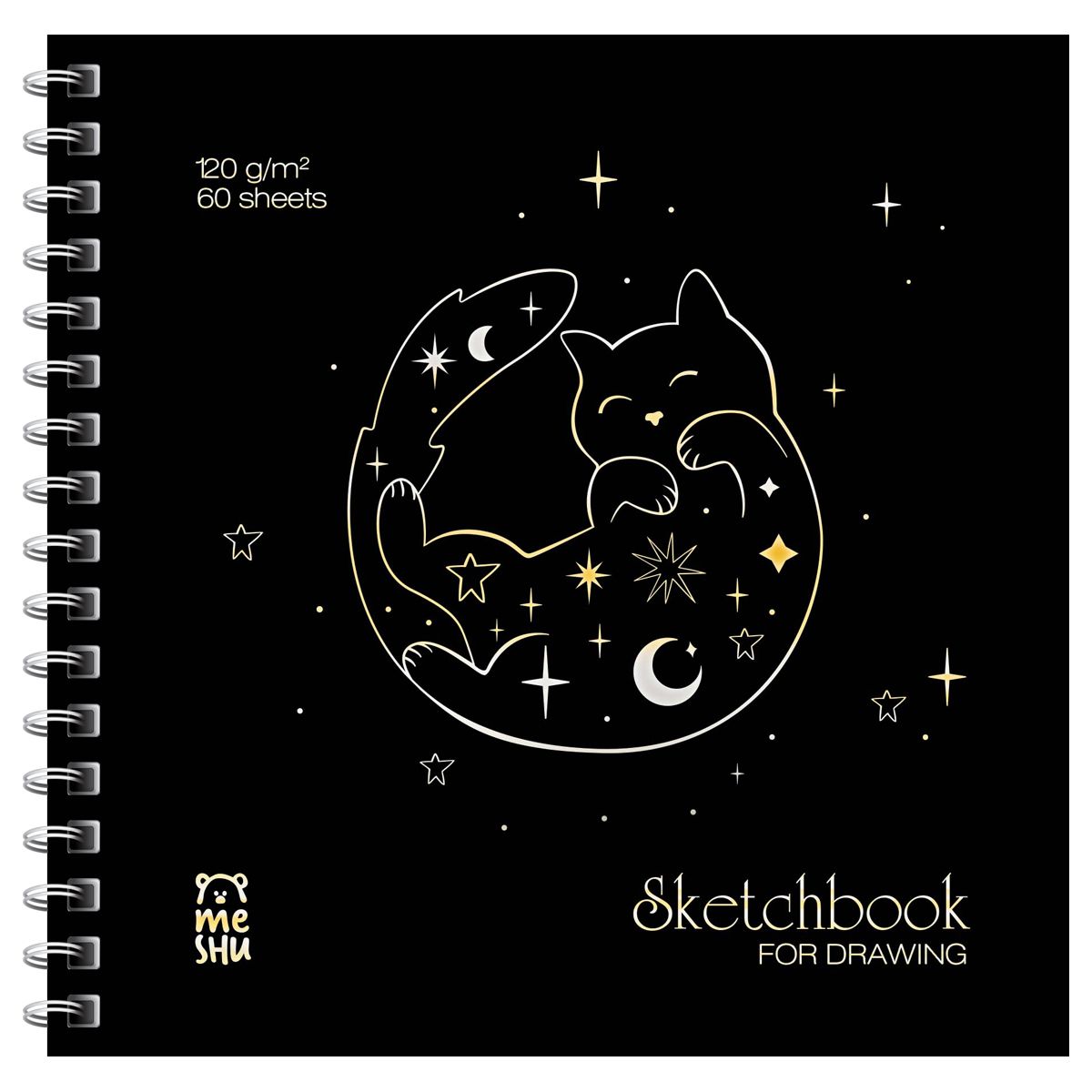 Скетчбук 60л., 150*150 MESHU "Black Cat", на гребне, отд. фольгой, soft-touch, 120г/м2