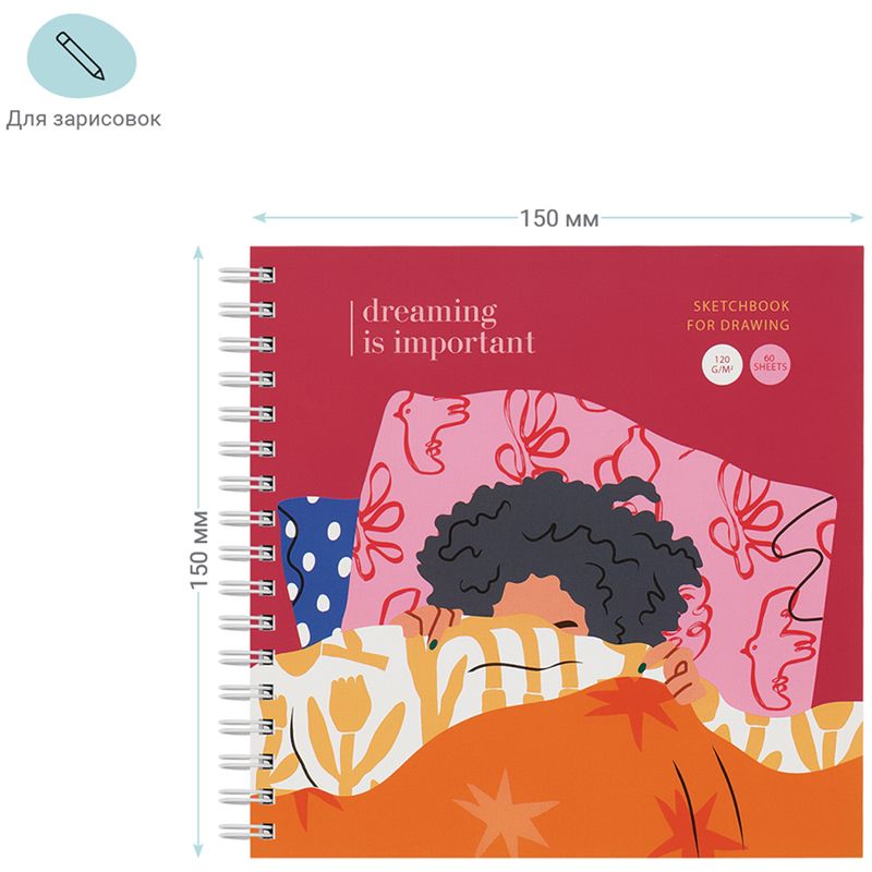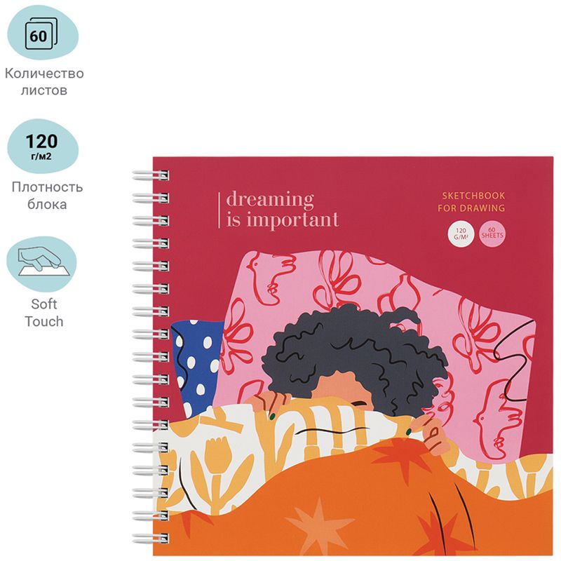 Скетчбук 60л., 150*150 MESHU "Pleasure", на гребне, soft-touch, 120г/м2