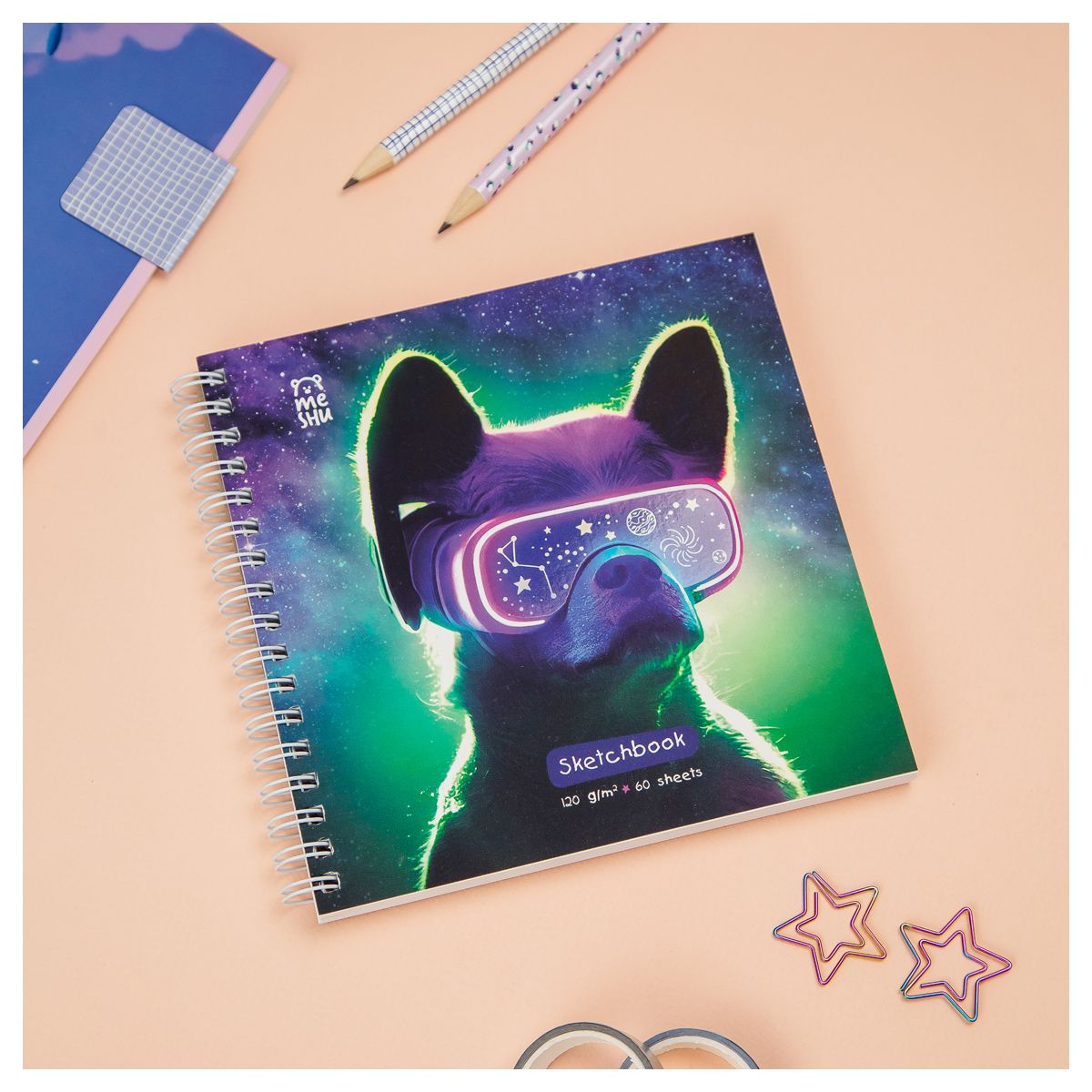 Скетчбук 60л., 150*150 MESHU "Виртуальный мир", на гребне, выб. лак, soft-touch, 120г/м2
