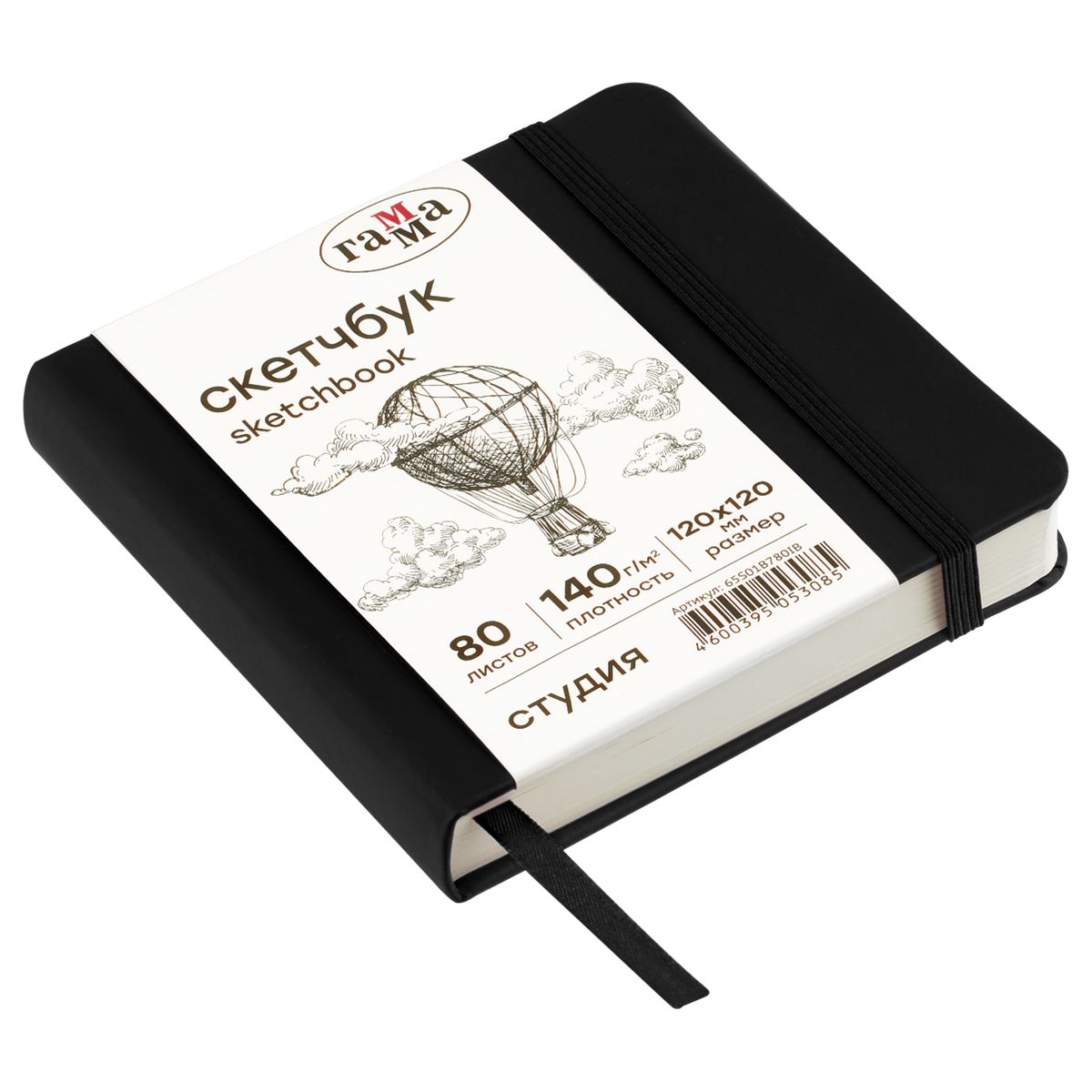 Скетчбук 80л., 120*120 Гамма "Студия", черный, твердая обложка, на резинке, слоновая кость, 140г/м2